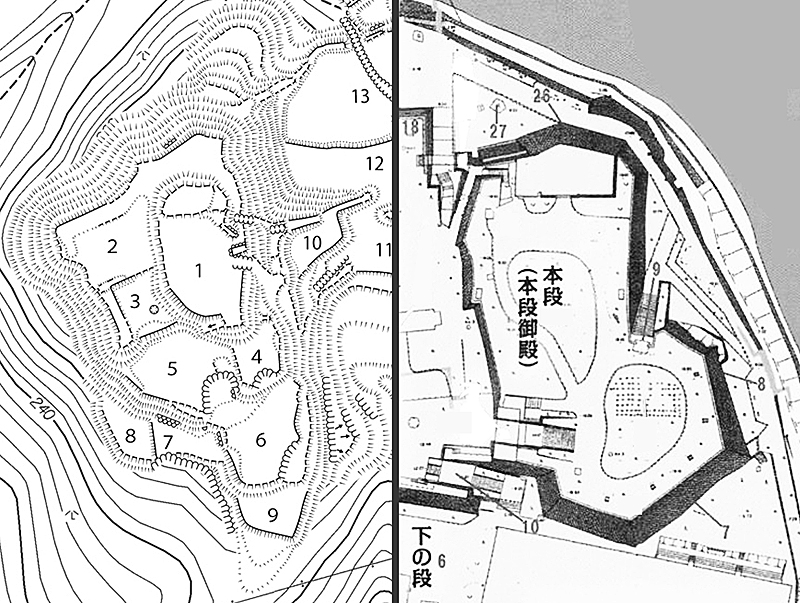 この両城の本丸周辺は、非常によく似た、相似形の縮小&拡大版なのでは ! ! ?