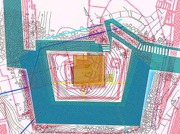 かくして、石垣山城天守の「入側」部分もそっくりそのまま甲府城に移築させようとしていた…と考えた場合、そこからは“タナからボタ餅”と申しますか、思わぬ副産物として、幻の石垣山城天守台のかなり詳細な形状が逆算できてしまう!!のです。