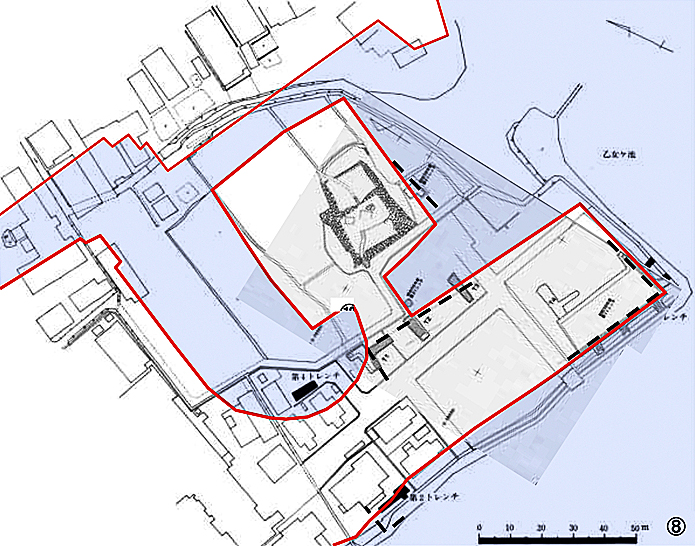 【 ご参考 】発掘調査から推定された大溝城の本丸等の範囲