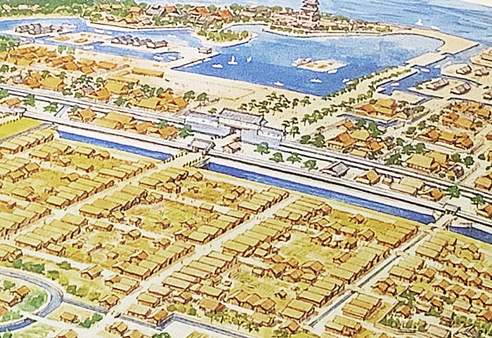 < 秀吉が築いた長浜城は、あろうことか、長浜のまっ平らな地形において、