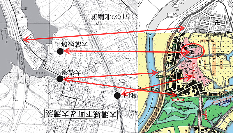 【 ご参考 】終戦直後(1945~1950年)の空中写真で見る淀古城の周辺